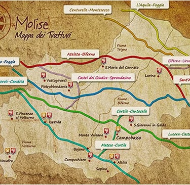 Se idealmente ci alziamo sopra la mappa del Molise, tra montagne, colline e vallate vedremmo disegnarsi una fitta rete di tratturi, gli antichi percorsi erbosi della transumanza. Lungo questi corridoi verdi, come piccole luci nel paesaggio, si incontrano numerose cappelle e chiese rurali dedicate proprio a San Nicola e San Michele, i due santi più cari ai pastori.